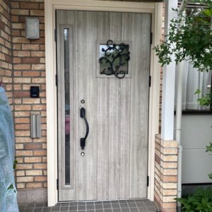 南欧風デザインの玄関ドアに交換し、明るくおしゃれなファサードを実現しました。 -