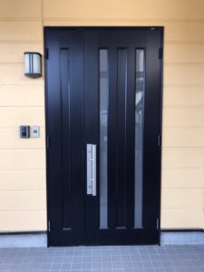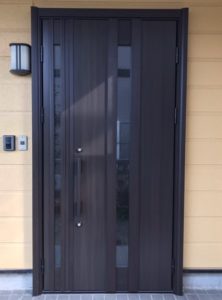 既存の玄関ドア枠を残したまま、「カバー工法」で最新型の玄関ドアに交換させていただきました。
