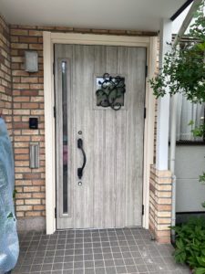 南欧風デザインの玄関ドアに交換することで、玄関周りの雰囲気が一新されました。